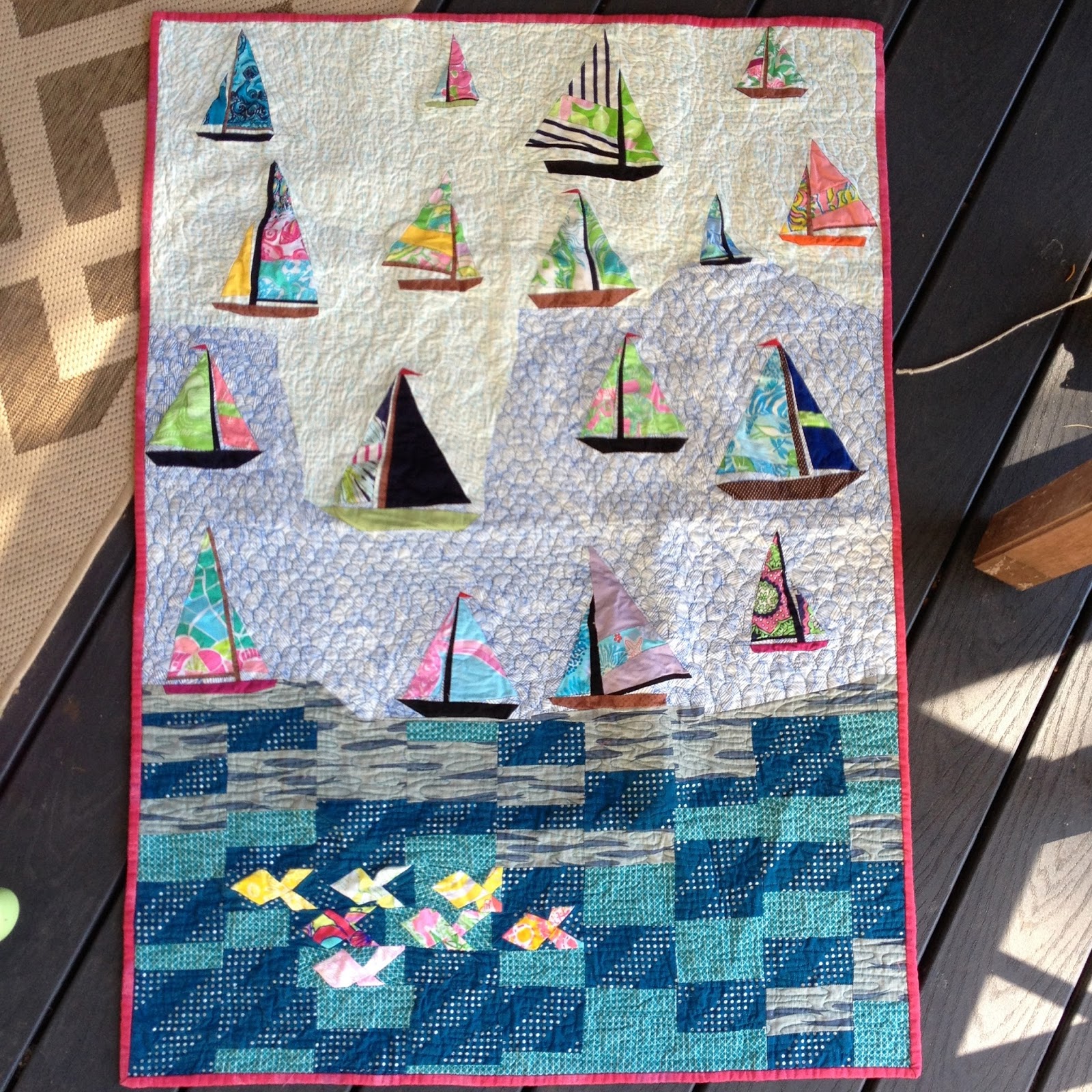 | A paper pieced quilt I made for Sara for the birth of her second daughter. Lilly fabric isn't my jam, but I sucked it up! :) |